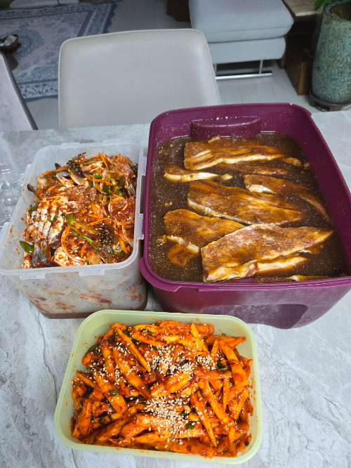 개장, 갈비. 더덕무침. 그리고 노릇노릇 전들..